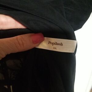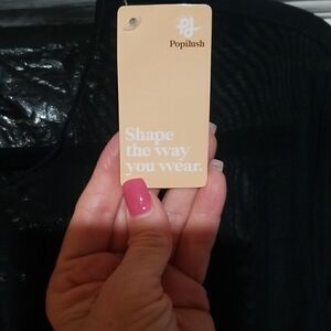 New Popilush Sheer Mesh Shapewear Long Sleeve Thong Bodysuit in Black