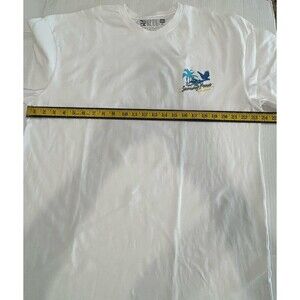 New Port Blue T-Shirt Men’s Size XXL Color White Graphic T-Shirt. Please reference attached pictures for front and back Parrot Graphics, colors, Condition and approximate sizing. 100% cotton
