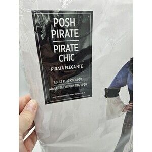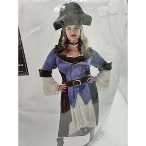 The product is a new women's Halloween costume in plus size XXL (18-20). The costume is styled as a posh pirate, featuring a blue and black color scheme. Made by Amscan, this complete outfit is perfect for cosplay or themed events. The design and manufacture take place in China, ensuring a high-quality and authentic look for your Halloween ensemble.