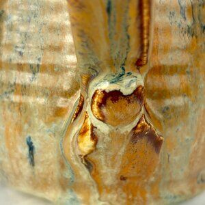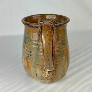 New, stunning one-of-a-kind ceramic mug featuring a mesmerizing reactive glaze in earthy tones of amber, cream, and deep navy. The unique marbled effect creates a beautiful abstract pattern that makes each sip an artistic experience. Ergonomically designed handle with decorative thumb rest adds both comfort and style.