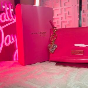 Prada Candy Gloss Pouch pink patent faux leather with zipper closure. The pouch measure around 8”x5”x2” This is a great bundle for a family member or friend. The Prada pouch is very versatile for many practical use. Key chain sold separately.