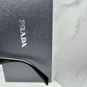 PRADA New Sunglasses - 100% Authentic! Sale Includes: Prada Box, Prada Hard Case, Prada Care Material, Prada Polish Cloth Brand: Prada Condition: Brand New Prada Sunglasses - 100% Authentic Item Details Black Acetate Front Frame Contrasting PRADA MILANO Silver Symbole Logo Prada 3D design of temples decorated with the iconic interpretation of the traditional Prada triangle logo Oversized Shape Unisex Eyewear Unique Serial Number etched to confirm authenticity Made In Italy Gray Gradient Lenses Frames May Be Used As Eyeglasses Measurements: Lens/Bridge/ Temple 53-20-145 mm 100% Authentic - 100% Positive Feedback - Trusted Seller! Great Gift - Designer Eyewear Sale!