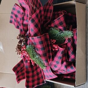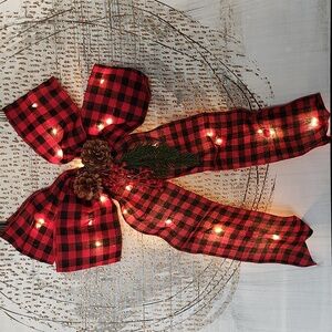 Christmas Tree Topper Bow with lights, Pre lit - battery already included, Checked Red Black Buffalo Plaid Decorative Bows.