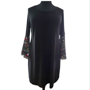 New Prelude Women's Plus Midi Black Bell Sleeve Sheer Straight Dress 2X