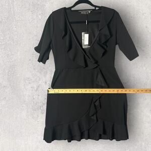 New PrettyLittleThing Black Frill Wrap Ruffle Dress Short Sleeve Twelve