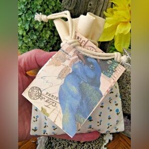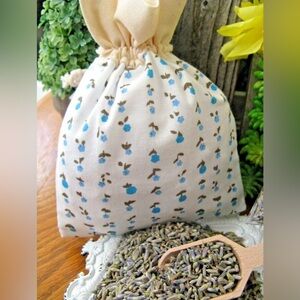 New Prim Rustic Cream w/ Blue Floral Sachet Bag, Tag & 1/2 Cup Natural Lavender