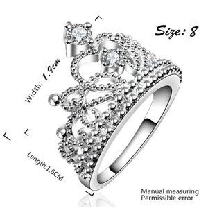 Women Silver Plated Princess Wedding Band Zircon Crown Ring Jewelry Gift