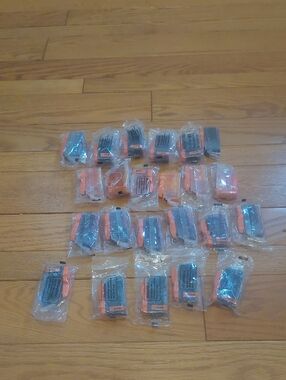23 new packages of printer ink. 6 size C-225 large black, 6 size C-225 yellow, 6 size C-226 red and 5 size C-226 cyan. All new and ready for your printer.