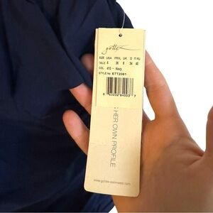 New! Profile By Gottex Tutti Frutti Ruffle One Shoulder Navy One Piece Swimsuit