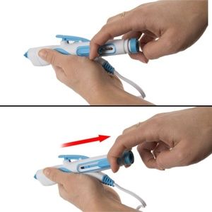The evolution of the glue gun is at hand with the new Westcott Premium Hot Glue Pen. With an easy-to-dispense trigger and ergonomic design, precision accuracy is delivered to every project. It has a pen style grip with a non-stick tip for easy cleanup. The nozzle changes from blue to red indicating when the pen is hot and ready for use. A top-mounted finger trigger allows for controlled glue dispensing. Use it on plastic, felt, Styrofoam, paper and silk. For best results use it with the Westcott mini glue sticks.
