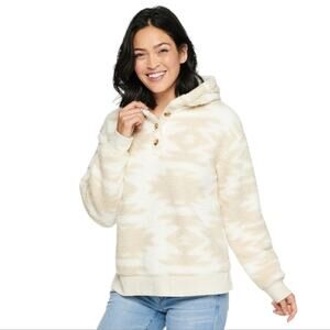 Life Henley Sherpa Hoodie in Cream Blanket Print. You'll love wearing this women's sherpa hoodie from Sonoma Goods For Life. Soft sherpa fabric. Ribbed cuffs. 3-button front.