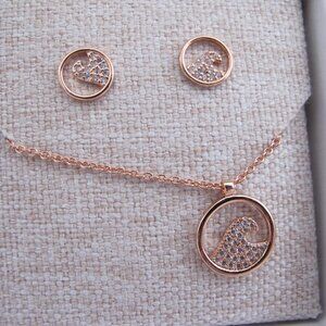 New in box - Pura Vida rose gold colored metal Pave Wave Necklace and Earring Set.