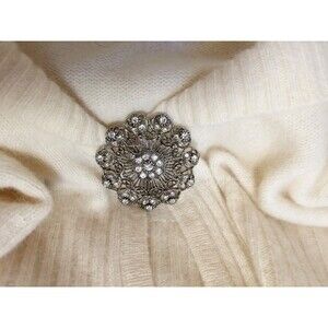 Elevate your wardrobe with this gorgeous cardigan from Pursuits, ltd. Made from a blend of lambswool, angora, and nylon, this sweater features a tight-knit, lightweight fabric that's perfect for winter, fall, and spring seasons. The long-sleeved, collared sweater comes with a brooch and rhinestone accents, giving it a classic yet modern appeal.