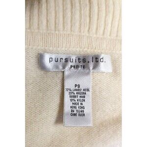 New Pursuits ltd. LambsWool Angora Blend Ivory Fuzzy Knit Sweater Womens 8 P C2
