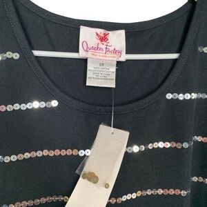 New Quaker Factory Womens Sequin Bling S/S shirt size 2X Plus size Blacksilver