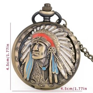 Quartz Ancient Indian Old Man Colorful Portrait Design Fob Pocket Watch Bronze Pendant Necklace Chain Souvenir Gifts