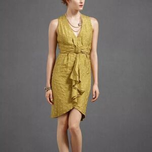New Quillaree BHLDN x Anthropologie Yellow Silk Tethered Dot Dress 0