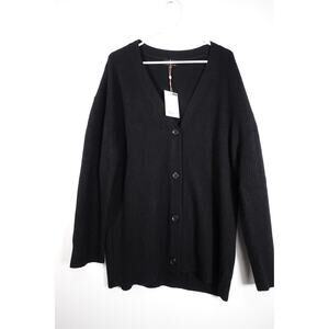 Elevate your winter and fall wardrobe with this stunning black Quince cardigan sweater. Crafted from 100% cashmere, this chunky-knit sweater boasts an oversized fit, perfect for a relaxed and stylish look. The V-neckline and button accents add a touch of elegance to this solid pattern sweater, making it a versatile addition to any outfit.