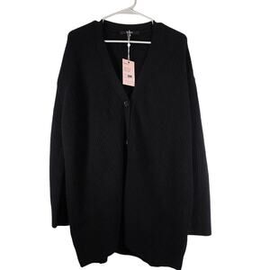 Elevate your winter and fall wardrobe with this stunning black Quince cardigan sweater. Crafted from 100% cashmere, this chunky-knit sweater boasts an oversized fit, perfect for a relaxed and stylish look. The V-neckline and button accents add a touch of elegance to this solid pattern sweater, making it a versatile addition to any outfit.