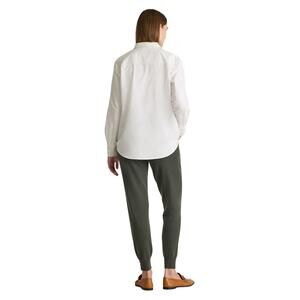 Upgrade your winter and fall wardrobe with these moss green Quince Mongolian cashmere sweatpants. The drawstring closure and elastic waistband ensure a comfortable fit, while the relaxed fit provides ample room for movement. These pants come in a beautiful green color and solid pattern, perfect for casual outings, travel, or activewear.