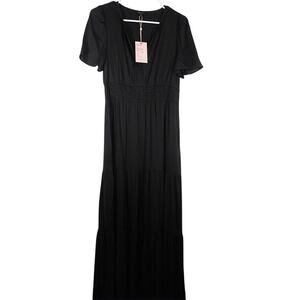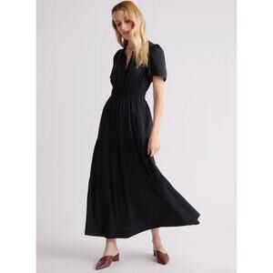 New Quince Silk Tiered Maxi Dress Small Black Bohemian Gothic Whimsy Small 3623