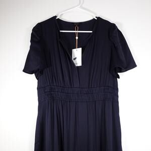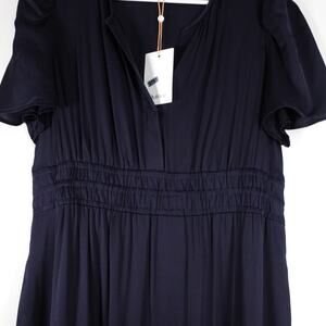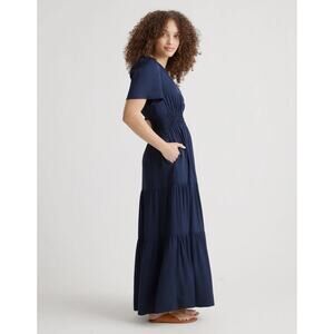 New Quince Silk Tiered Maxi Dress Women’s Medium Navy Blue Boho 3797
