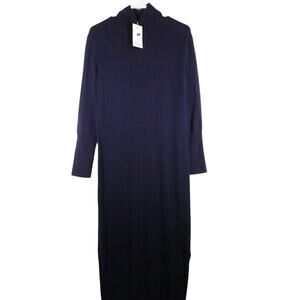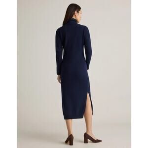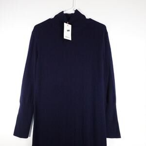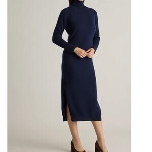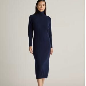 New Quince True Navy Mongolian Cashmere Turtleneck Midi Sweater Dress Medium
