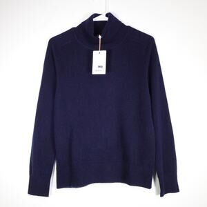 New Quince Women Turtleneck Sweater True Navy Blue Mongolian Cashmere Small 3472