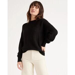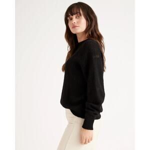 New Quince Women’s Baby-Alpaca Wool Diamond Stitch Crew Black Small 3653