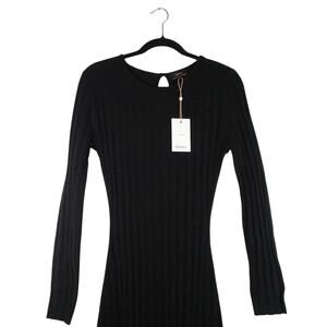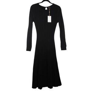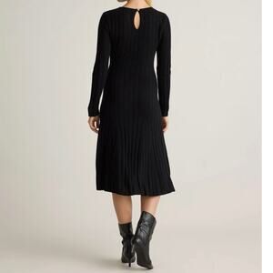 New Quince Womens Mongolian Cashmere Wide Rib Midi Sweater Dress Black M 3607