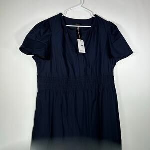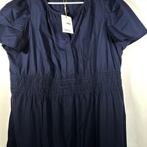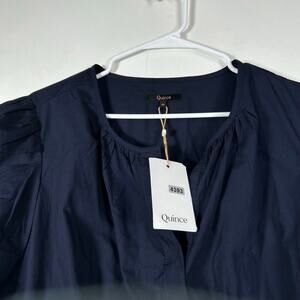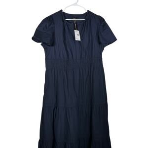 New Quince Women's Navy Blue Tiered Maxi Dress 2X Plus Organic Cotton Poplin