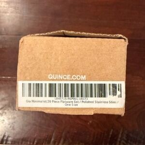 New in box. Quince x Sambonet Gia Minimalist 20 Piece Flatware Set. Set your table with this sleek and modern 20-Piece Flatware Set, designed in Italy by Sambonet, a Italian heritage brand that has been manufacturing premium design-forward silverware since 1856. Exclusive to Quince, this set features clean lines and a contemporary aesthetic, crafted from high-quality 18/10 stainless steel for lasting durability and shine. Perfectly balanced for comfort and style, each piece brings a touch of Italian sophistication to your table. Made with premium 18/10 stainless steel. Polished mirror finish. Durable and rust-resistant. Set includes (4) salad forks, (4) dinner forks, (4) dinner knives, (4) dinner spoons, and (4) teaspoons. Responsibly produced in a facility using renewable energy sources and recyclable materials. Designed in Italy by Sambonet, an family-owned silverware manufacturer that has been manufacturing silverware since 1856. Winners of multiple design awards and known for their commitment to craftsmanship, Sambonet brings only the best quality flatware to your table. I have multiple sets of this flatware. Bundle and save on price and shipping. Excellent new, wrapped, clean condition.