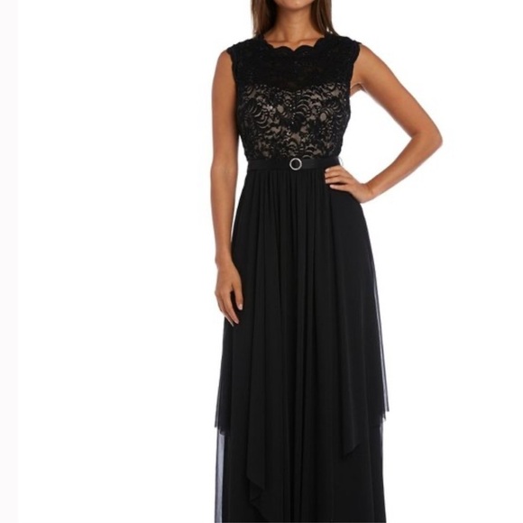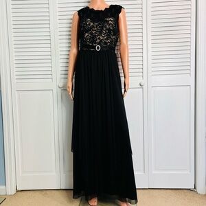 New R & M RICHARDS Sequined Lace Chiffon Black Gown Size 12