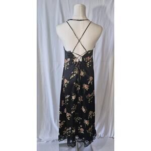 New R13 Womens Black Floral 100% Silk Lace Back Slip Midi Dress Small