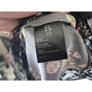 The New R13 Women's Black Floral Silk Lace Back Slip Midi Dress in size Small is a stylish and elegant dress perfect for various occasions. Made from 100% silk with a satin fabric type, this dress features a sleeveless design with a V-neckline and a lace-up closure. The black floral pattern adds a touch of femininity, making it ideal for a party, cocktail event, or casual outing. The midi length and slip dress style add a touch of sophistication to the overall look, making it a must-have piece for any woman's wardrobe.