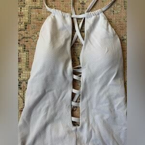 New RACHEL Rachel Roy Pique Lattice Cutout One Piece Swimsuit White Small