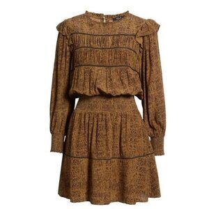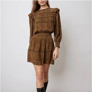 New RAILS Faren Sepia Python Long-Sleeve Mini Dress Size XS
