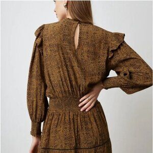 Rails "Faren" dress in Sepia Python print with shoulder frilling