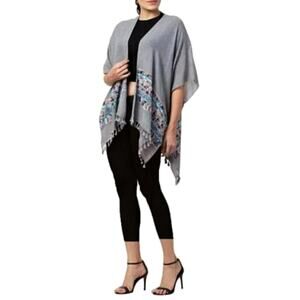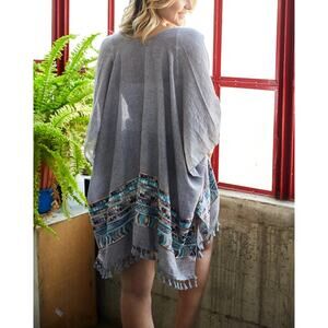 New! RAJ Aztec Embroidered Tassel Trim Beach Cover-up Boho Kimono Shawl Wrap