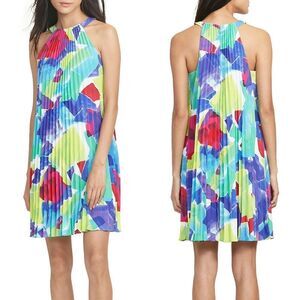New! RALPH LAUREN Women's Abstract Print Pleated Dress Size 14 Multicolored