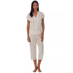 New! RALPH LAUREN Women's Floral 2-Piece Knit Pajamas PJ Set Top Capri Pants MED