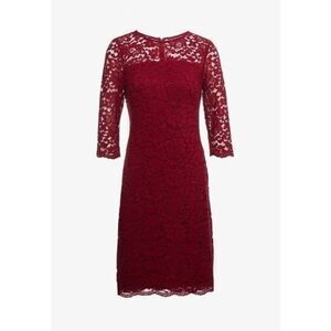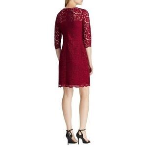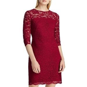 New! RALPH LAUREN Women's Floral Lace Sheath Red Dress Scalloped Hem Size 12
