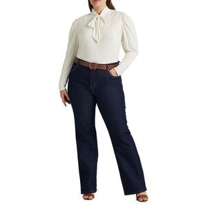 New! RALPH LAUREN Women's Pintuck Tie-Neck Jersey Top Blouse Size 1X Color Cream