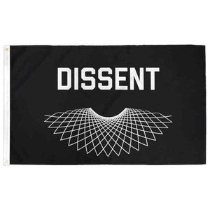 This RBG dissent flag is made with grommets and double-stitched edges to reduce fraying. It is constructed of 200D Polyester for durability and minimal color bleed-through. (Most flags are made with cheap 75D material.)