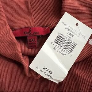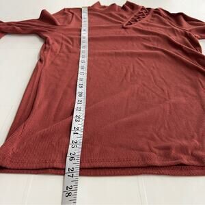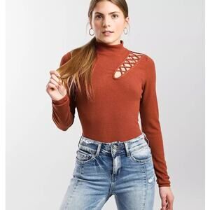 New RED BKE Long Sleeve Ribbed Mock Neck Rust Top Cutout Detail Women's SIZE XXL