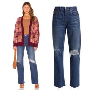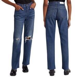 New! RE/DONE Originals 90s High Rise Loose Straight Destroyed Broken Blue Jeans
