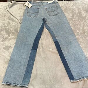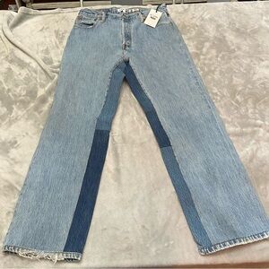 New! RE/Done 90’s crop low slung indigo spliced patchwork blue 28843