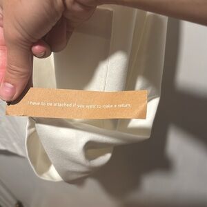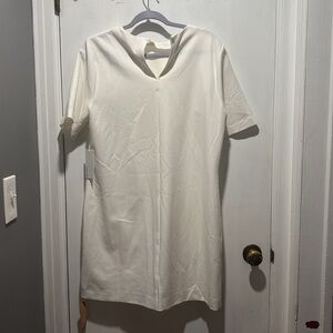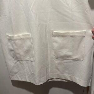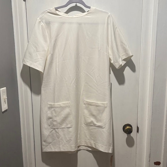 NWT Reformation finsbury mini dress. Two large front pockets. Boxy fit. Minor black spotting on one of the sleeves, pictured. No other callouts.