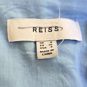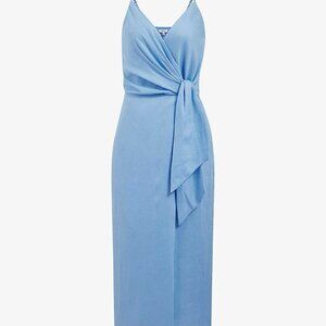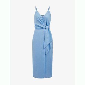New REISS Esme Blue Linen Side Tie Cross Over Dress US 4