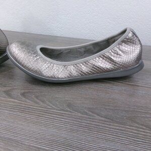 New REVITALIGN " Inca " Leather Silver Metallic Ballet Flats Shoes 8.5 Round Toe